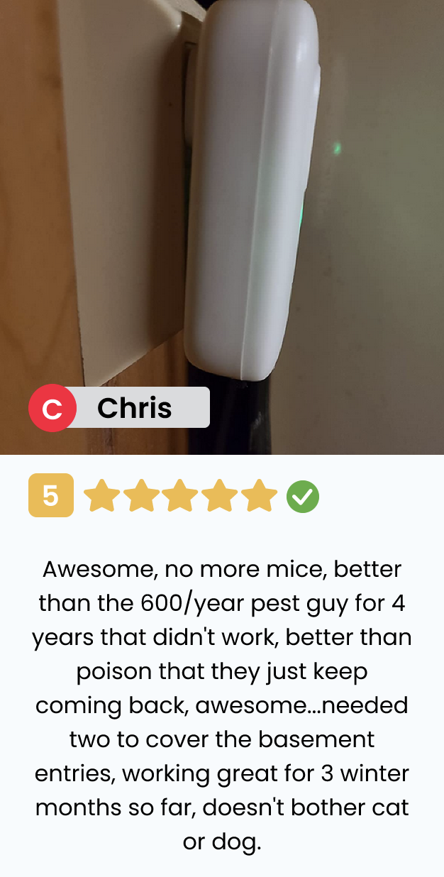 7. NO DEAD PESTS TO CLEAN UP - Because this technology drives them away instead of killing them, there is no clean up of filthy pests.